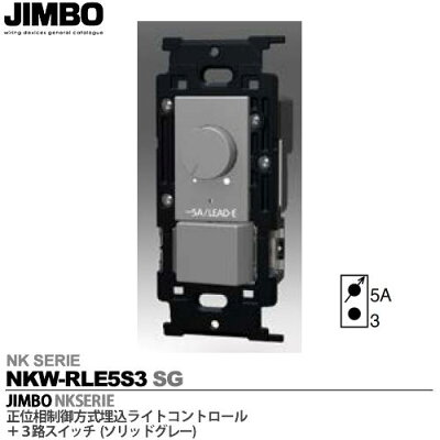 【JIMBO】NKシリーズ配線器具NKシリーズ適合器具正位相制御方式ライトコントロール+3路スイッチNKW-RLE5S3 SG色:ソリッドグレー(SG)