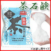 薬用 茶石鹸 さっぱりタイプ お試し用泡立てネット付静岡産茶葉エキス配合(保湿成分)。