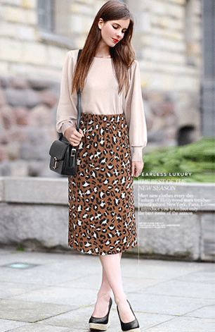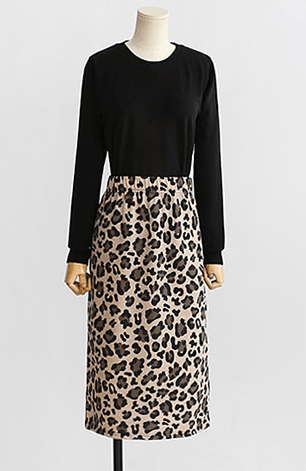 ミモレ丈 レオパード タイトスカート コットン100% Iライン ウエストゴム ニュアンスカラー トレンド 豹柄 オフィス OL 通勤 参観日 女子会 母 ママ 旅行 服装 新作【メール便送料無料】[Beige/Brown/Wine][Free]joo25400